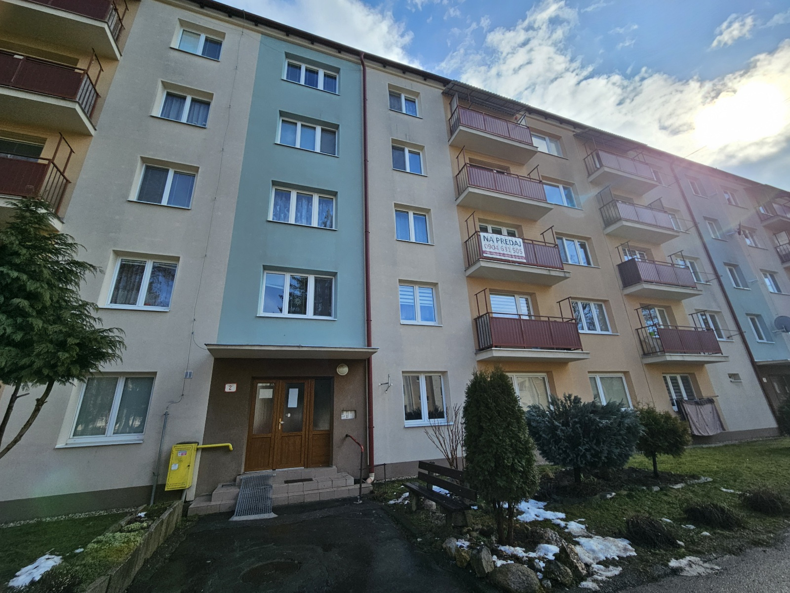 Bytový dom prešiel kompletnou rekonštrukciou /zateplenie fasády, medziposchodové okná, vstupné dvere/