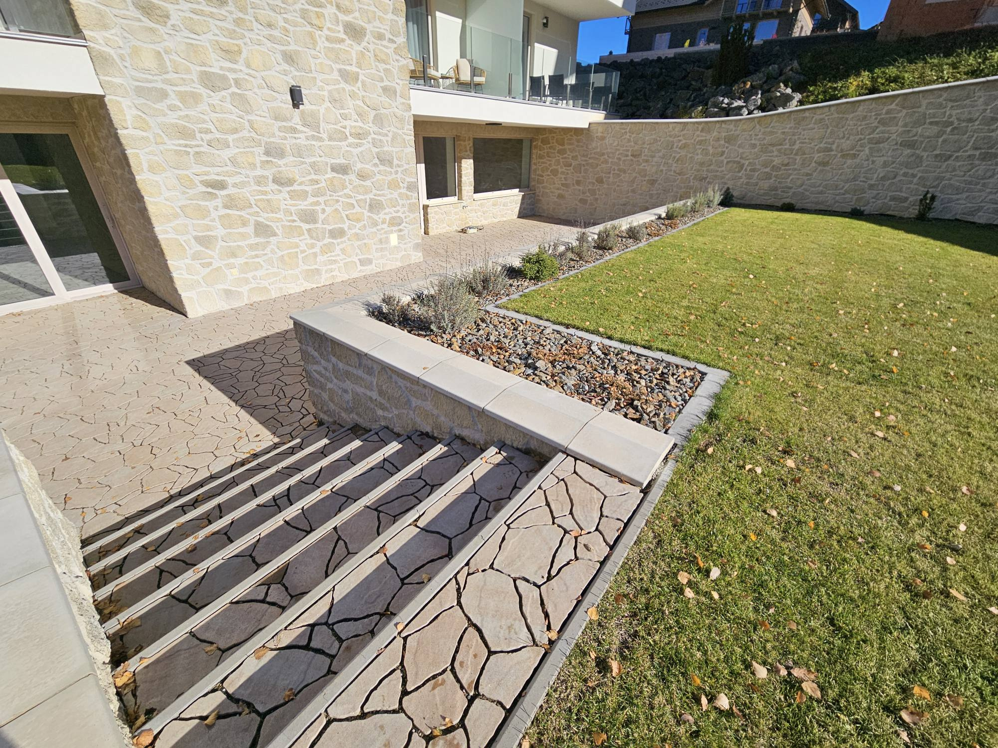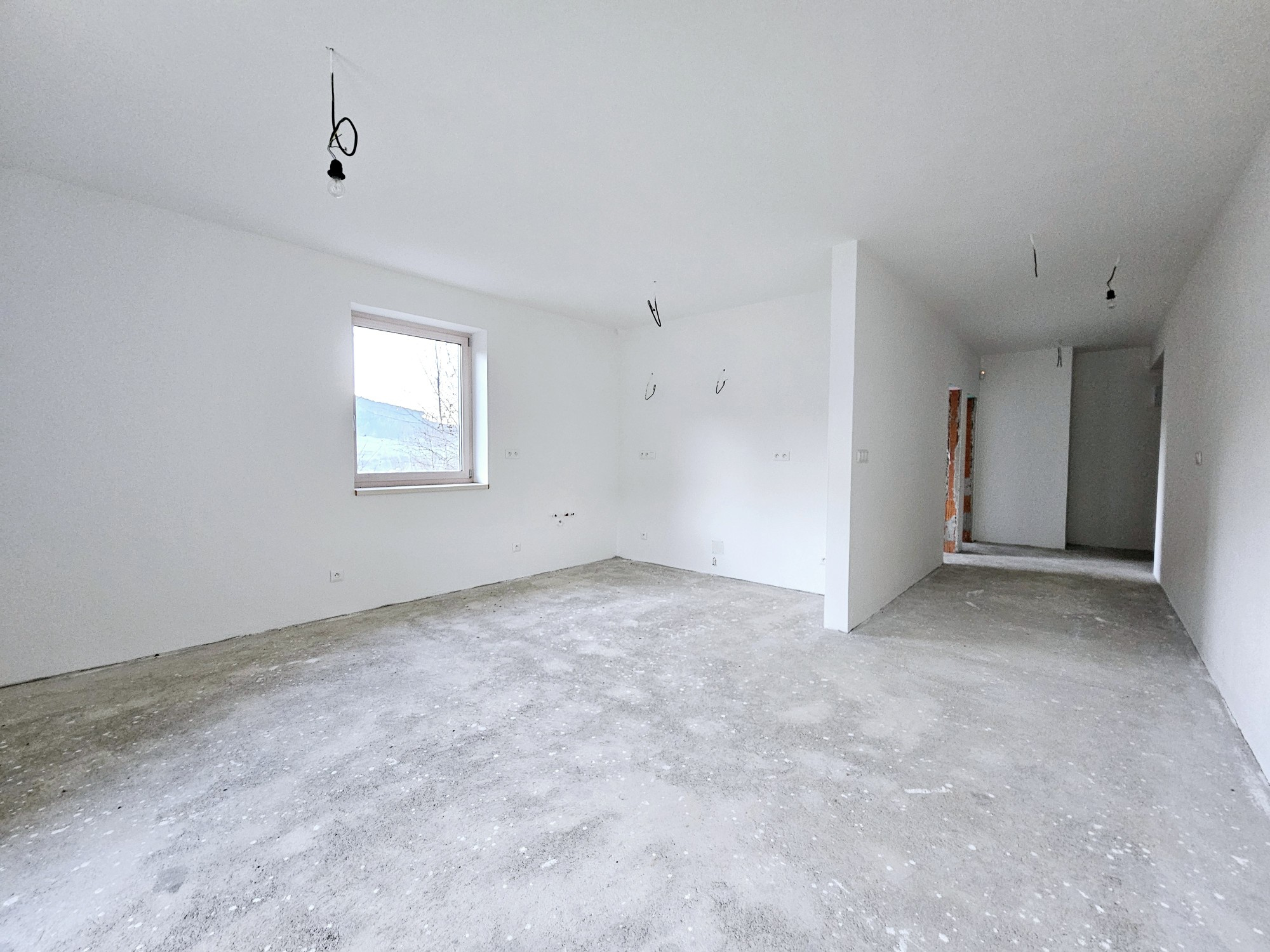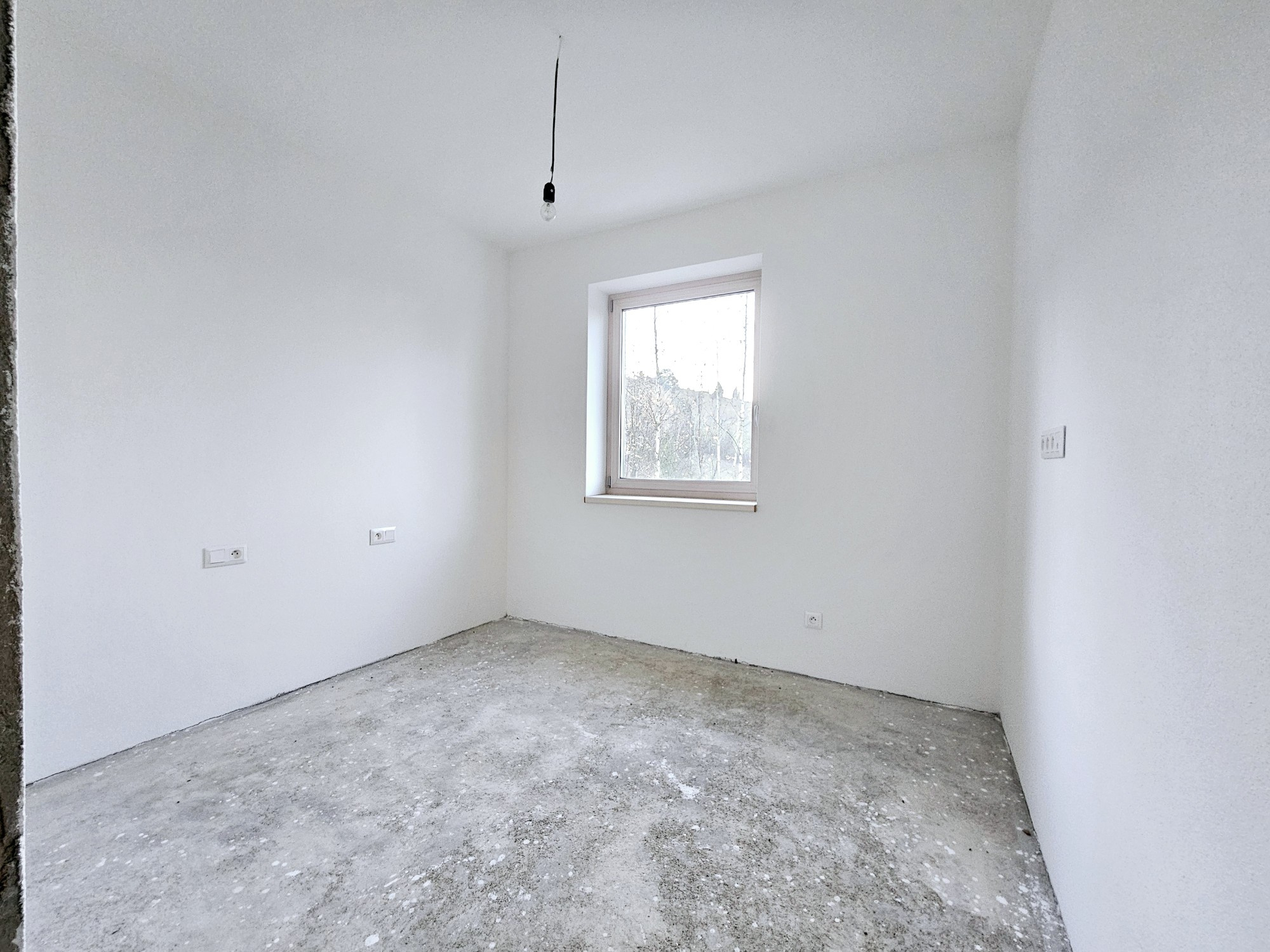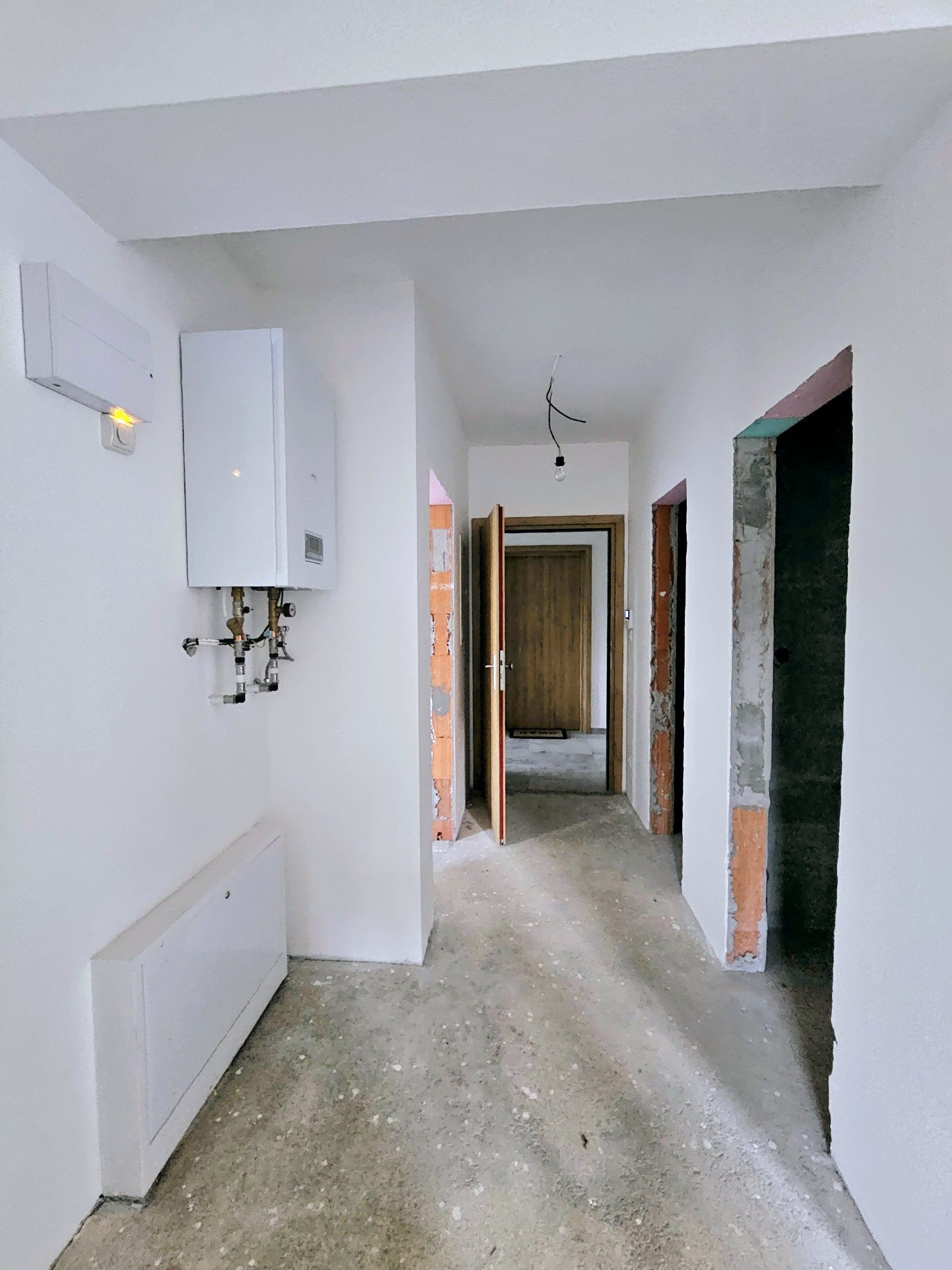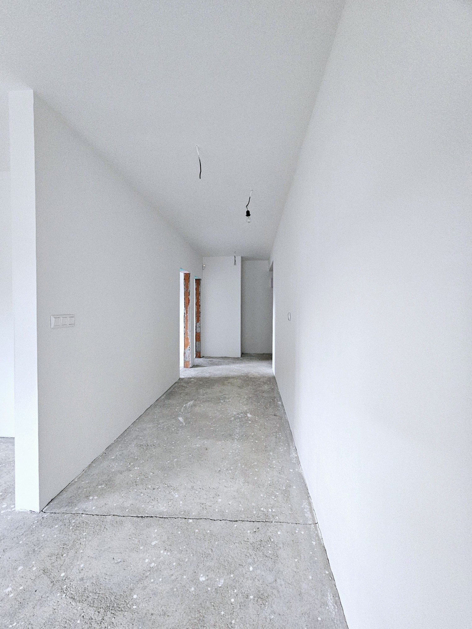 vstupné dvere, podlaha v apartmáne ukončená betónovým poterom, povrchové úpravy stien- vápenno-cementové omietky, interiérový náter 2x biela farba, kúpeľňa + WC – vápenno-cementové omietky, príprava elektroinštalácie, príprava vodoinštalácie, príprava pre varnú dosku (380W), zabudovaný podomietkový modul so vstavanou nádržkou pre WC,príprava pre sprchovú a umývadlovú batériu